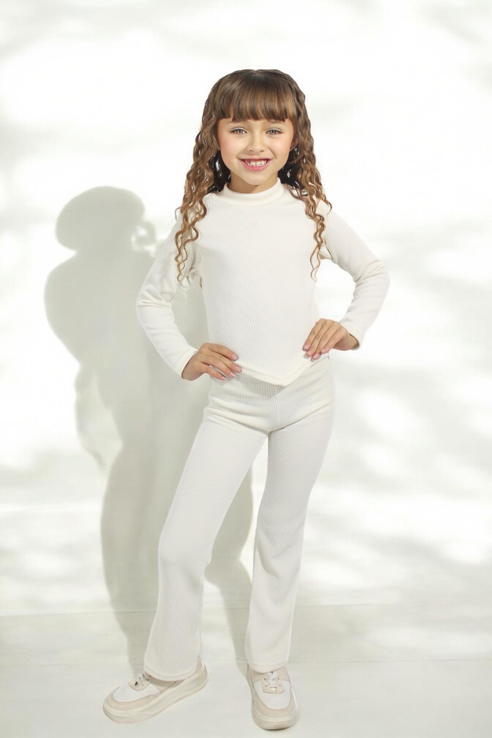 📏 Guía de tallas: Nuestro modelo del set color Marfil tiene 8 años, mide 1.20 cm y usa talla 8